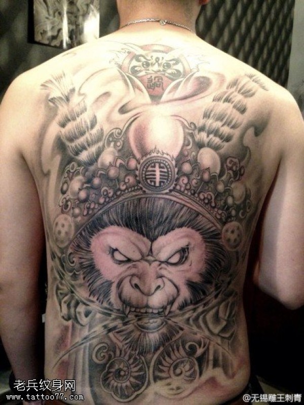 满背个性黑灰齐天大圣孙悟空纹身图案