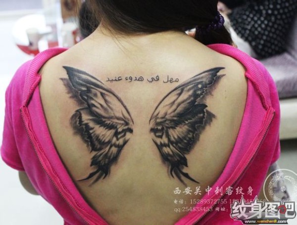 后背上的蝴蝶翅膀纹身