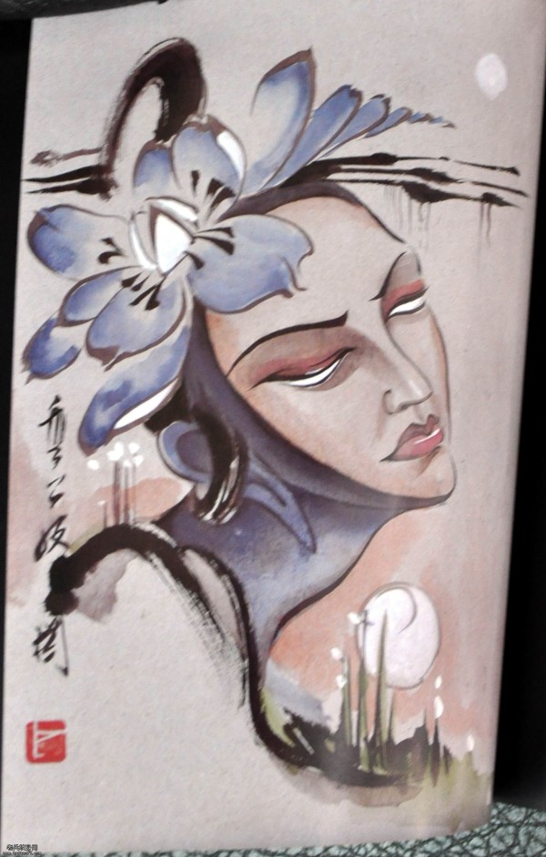 能面万媚纹身手稿_52张日式能剧面具纹身手稿图案素材欣赏