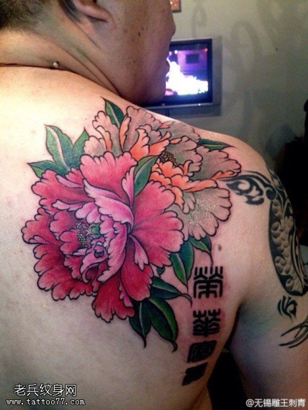 后肩唯美花藤英文图案图片_植物纹身图案大全_纹身图吧