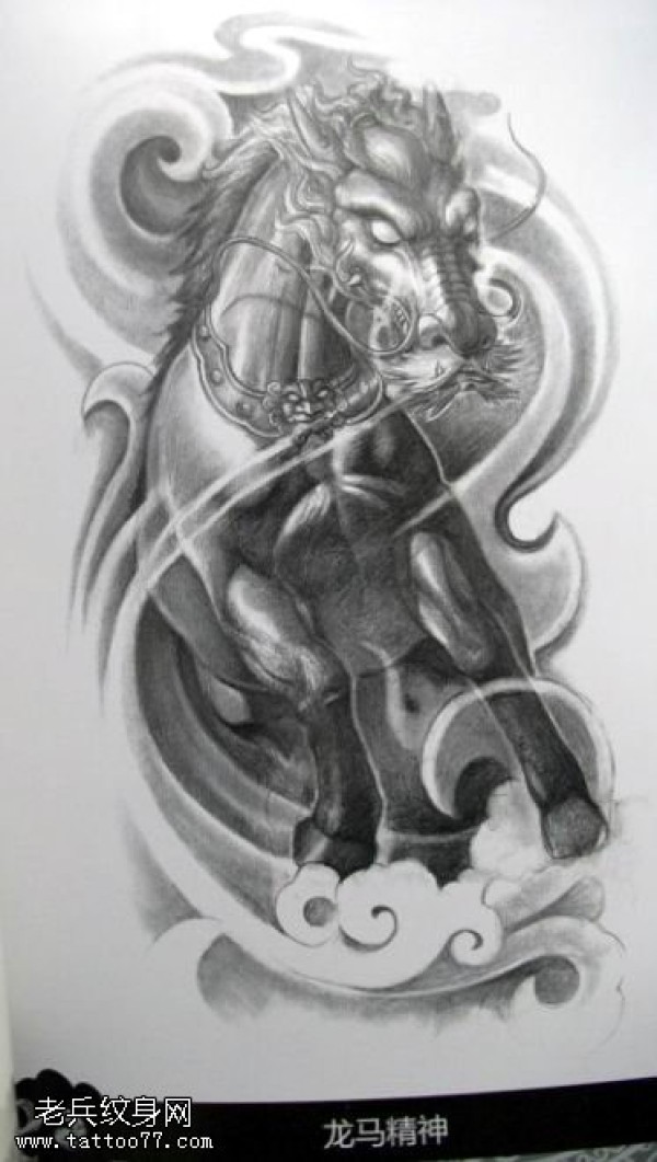龙纹身手稿_一组老传统黑灰龙手稿纹身图案