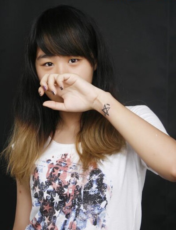 清纯美女手臂好看的五角星纹身图案 图片