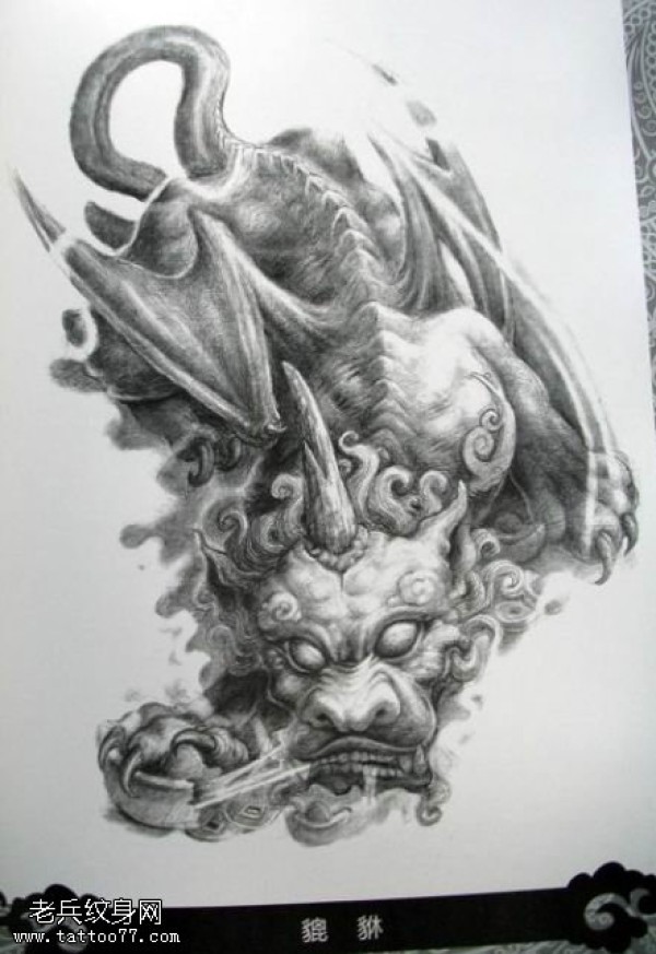 龙纹身手稿_一组老传统黑灰龙手稿纹身图案