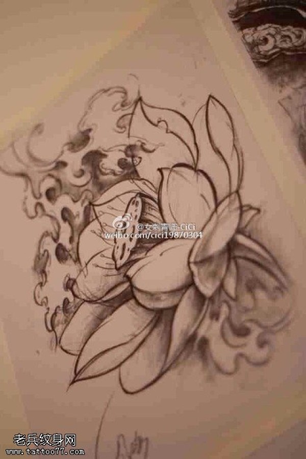 黑灰素描莲花纹身手稿图片