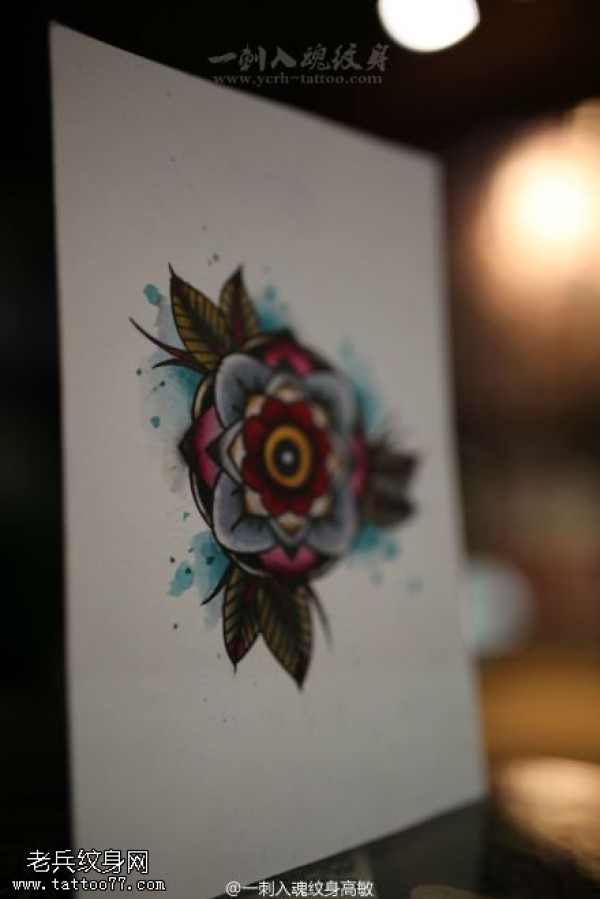 个性彩色玫瑰花纹身手稿图片