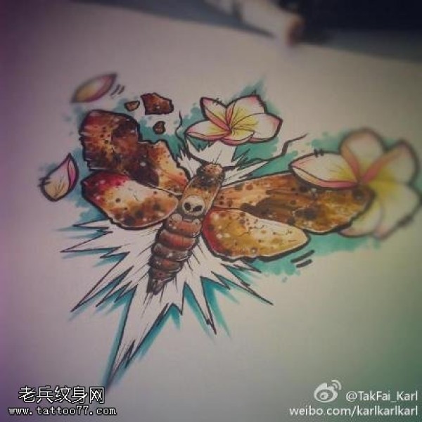 彩色school蛾子纹身手稿图片
