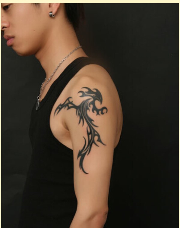 时尚帅哥大臂黑白凤凰图腾纹身图案