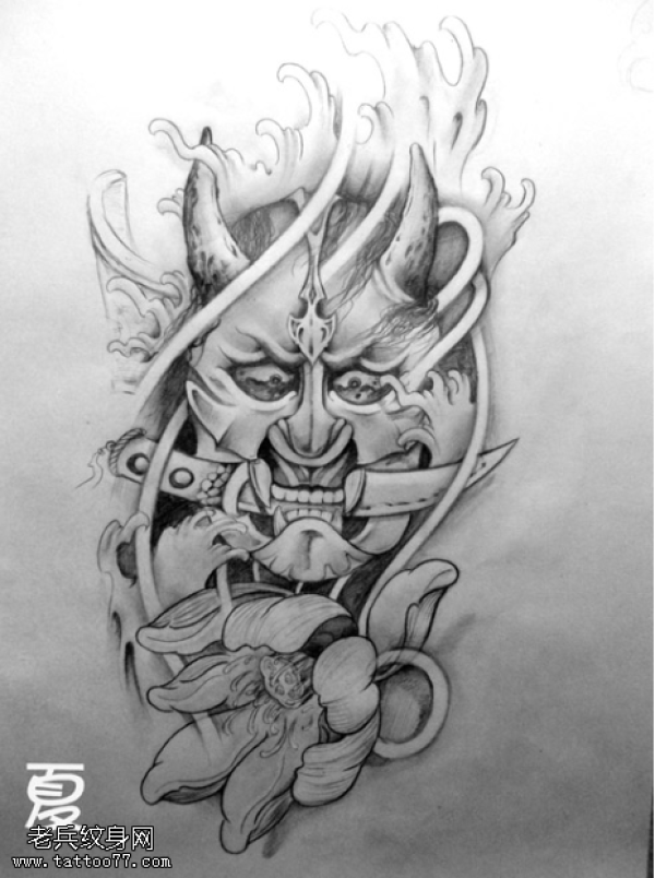 能面万媚纹身手稿_52张日式能剧面具纹身手稿图案素材欣赏
