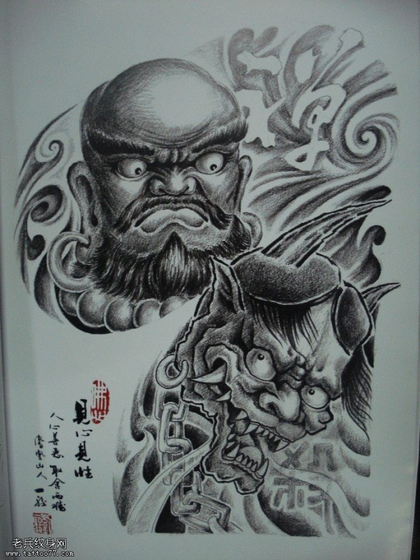 能面万媚纹身手稿_52张日式能剧面具纹身手稿图案素材欣赏