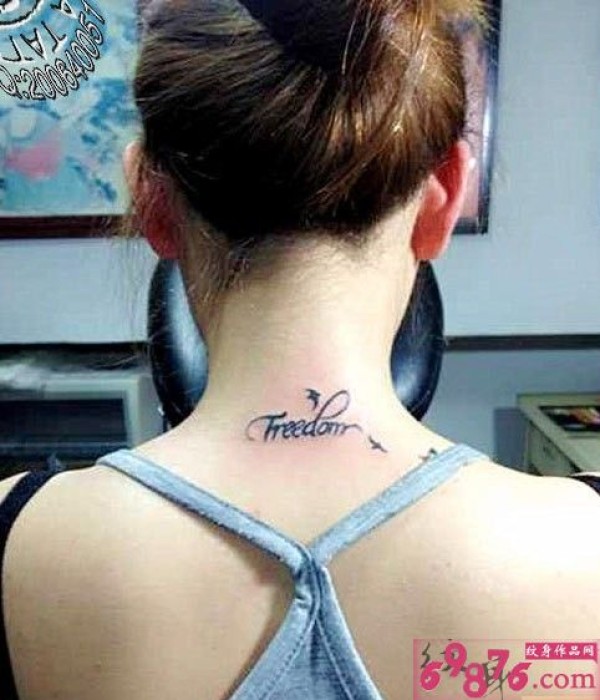后颈部纹身小图--9张女生脖子后颈处的简约纹身图案