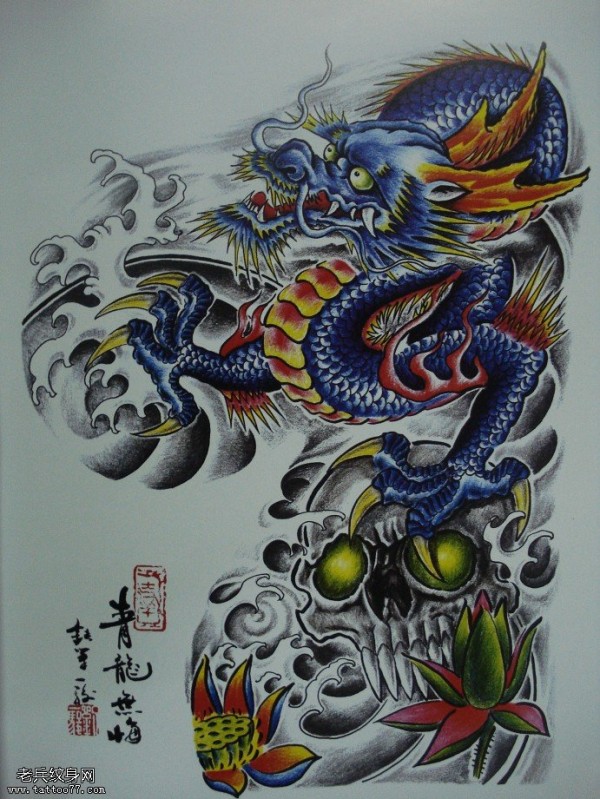 龙纹身手稿_一组老传统黑灰龙手稿纹身图案