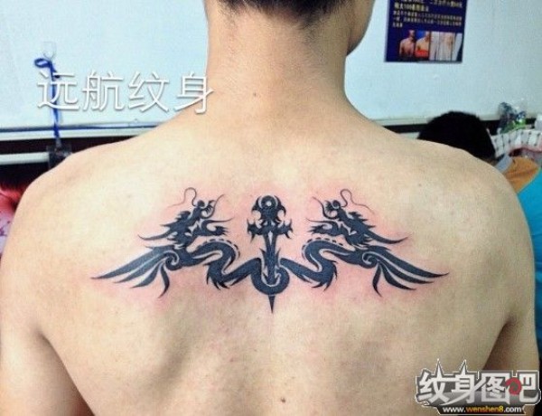 龙纹身手稿_一组老传统黑灰龙手稿纹身图案