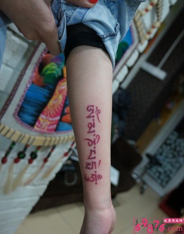 藏文六字真言手臂纹身图片