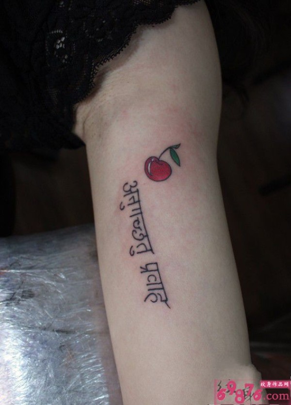 清新藏文小樱桃纹身图片