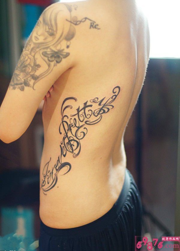 唯美腰部创意花体英文纹身图片