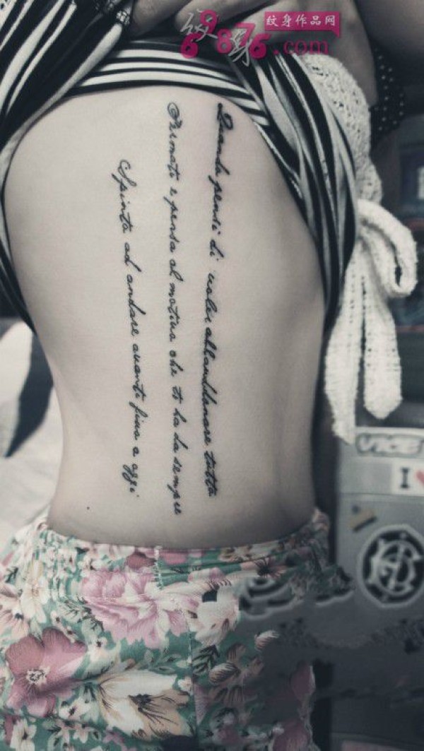 女生后腰纹身黑白灰风格抽象线条纹身图案