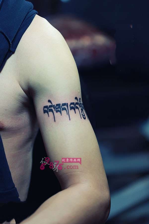 男生手臂藏文臂环纹身图片