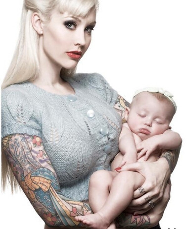 漂亮国外美女妈妈花臂个性纹身作品图片