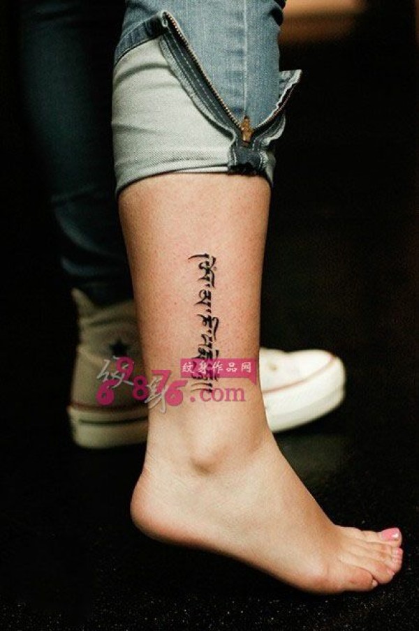 复古梵文脚踝纹身图片