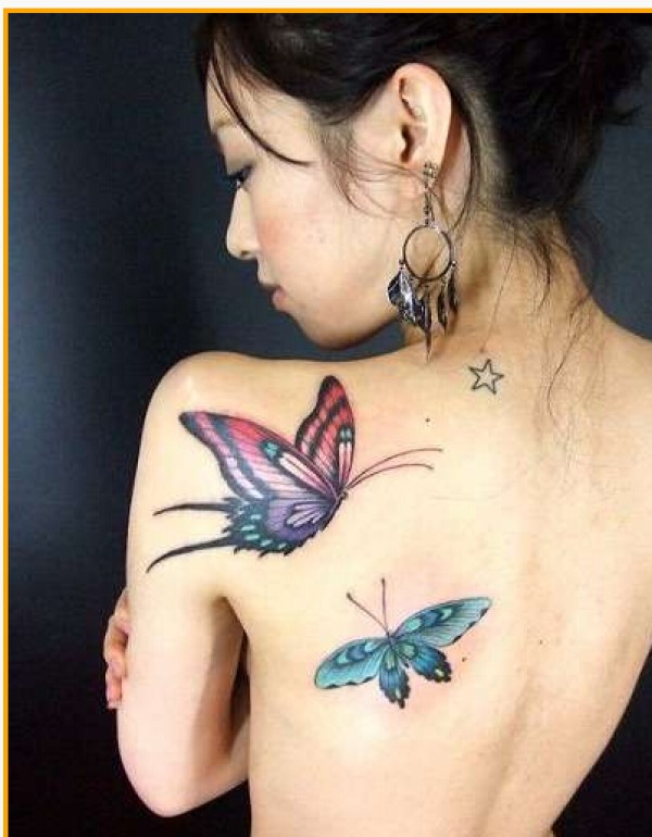 性感mm后背两只漂亮好看的蝴蝶纹身图图片