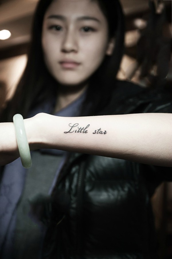 小美女手臂英文时尚纹身图片