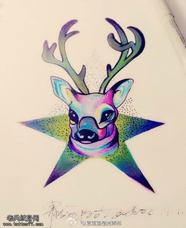 星空五角星羚羊纹身手稿图片