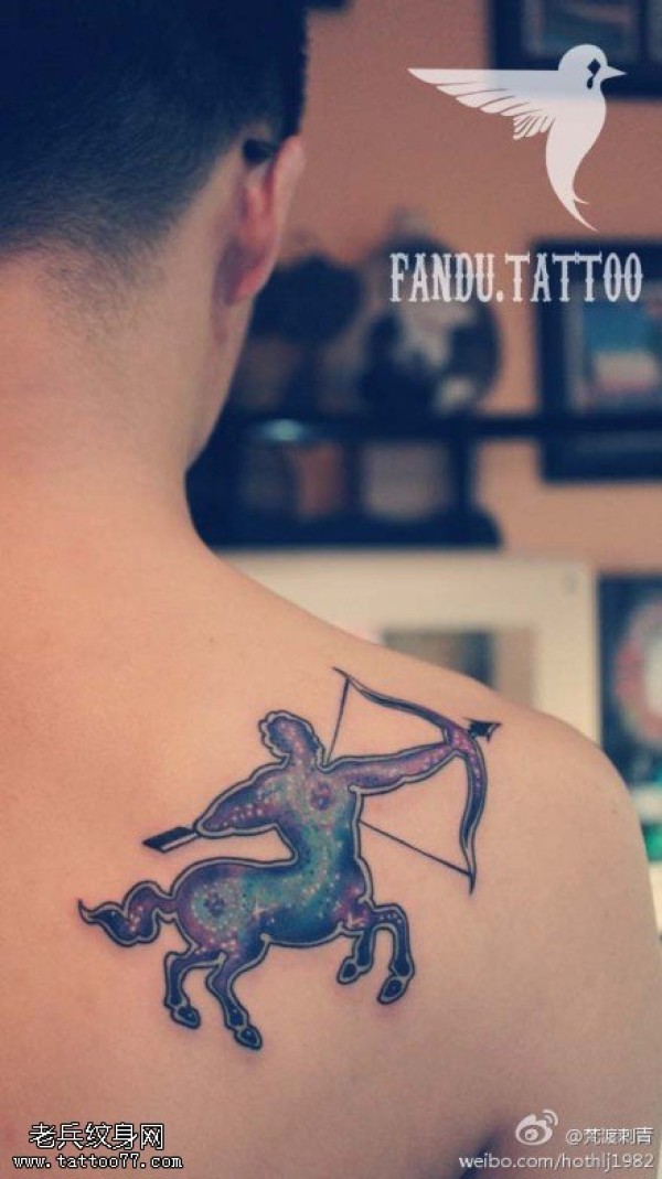 肩背彩色星空射手座纹身图案