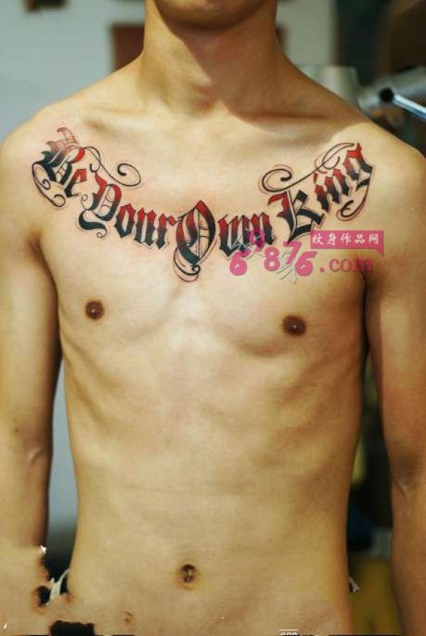霸气花体英文胸口纹身图片