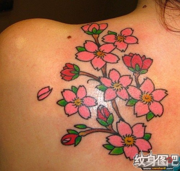 女生肩花纹身_15张女性双肩对称的肩花纹身图案作品图片