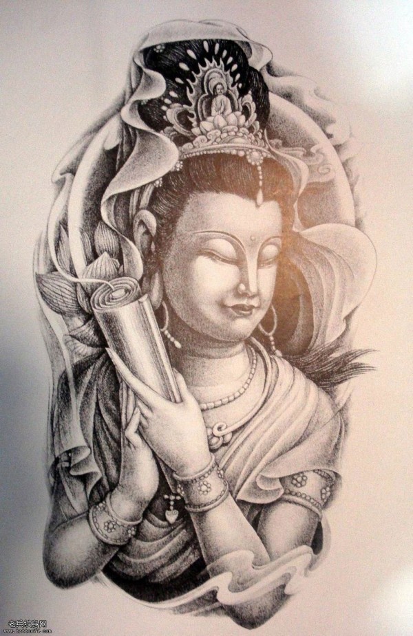 纹身图吧为大家一款传统观音纹身图案