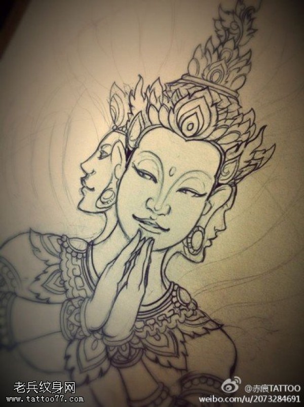 能面万媚纹身手稿_52张日式能剧面具纹身手稿图案素材欣赏