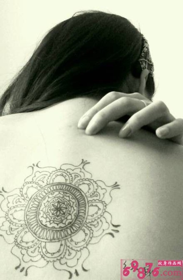 女生背上图腾复古纹身图片