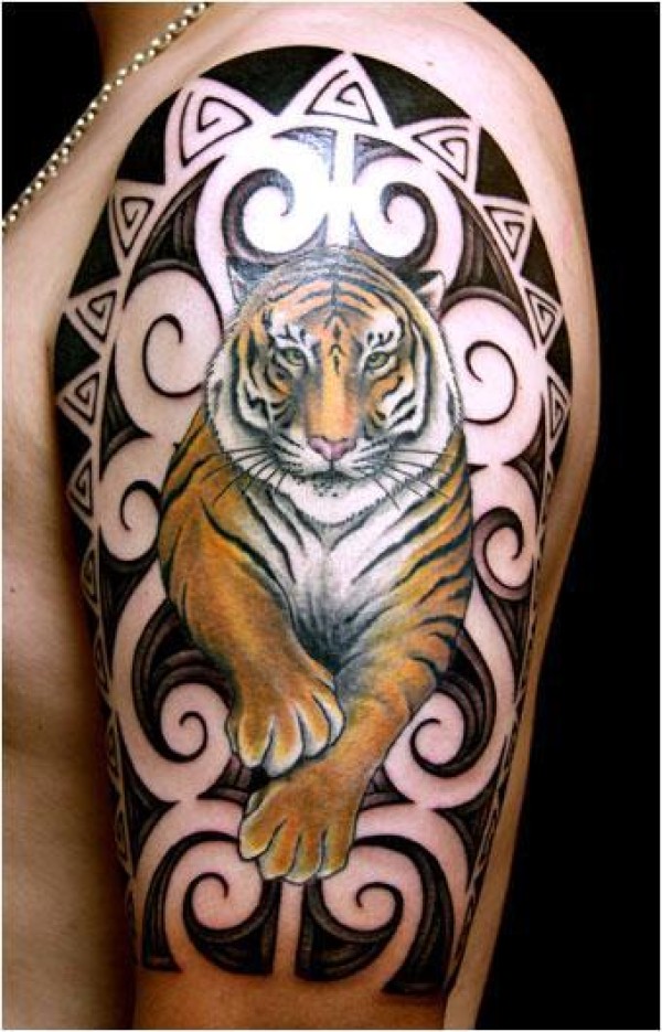 霸气半胛老虎纹身_动物纹身图案大全_纹身图吧