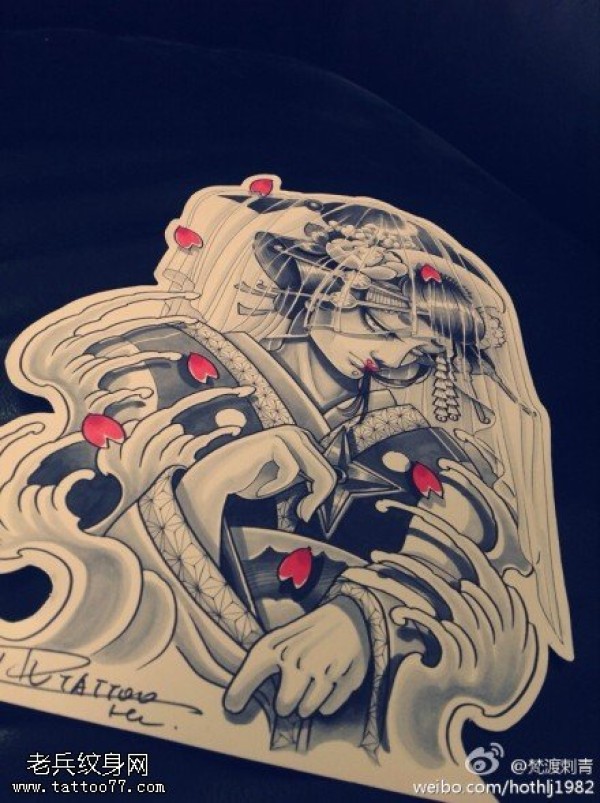 能面万媚纹身手稿_52张日式能剧面具纹身手稿图案素材欣赏