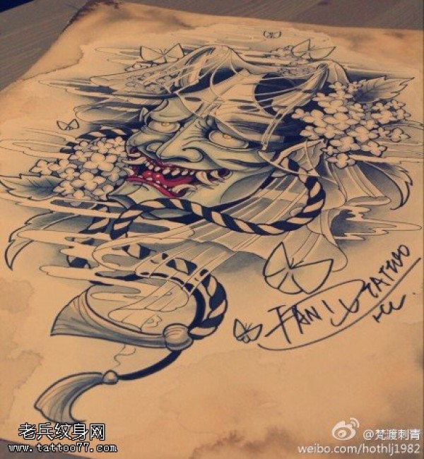 能面万媚纹身手稿_52张日式能剧面具纹身手稿图案素材欣赏