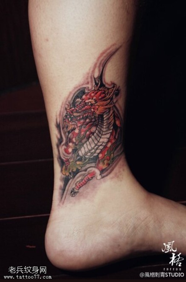 脚踝彩色传统麒麟纹身图案