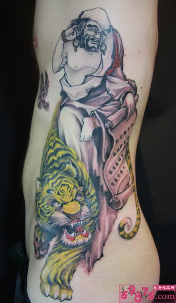 腰部中国刺青伏虎罗汉图案_腰部纹身图案大全_纹身图吧