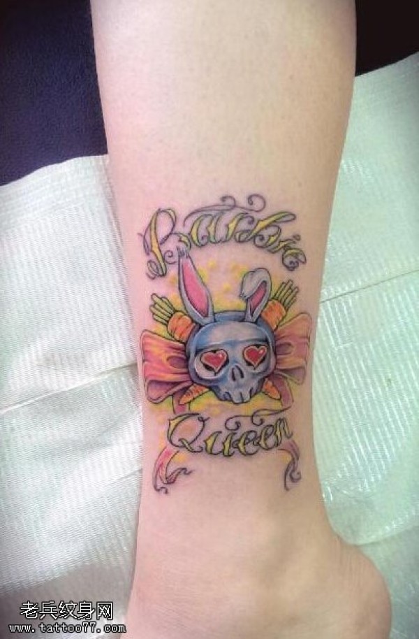 女生脚踝彩色蝴蝶结兔子纹身图案
