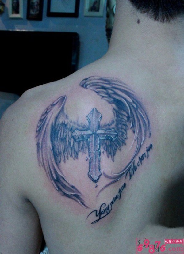 女生肩花纹身_15张女性双肩对称的肩花纹身图案作品图片