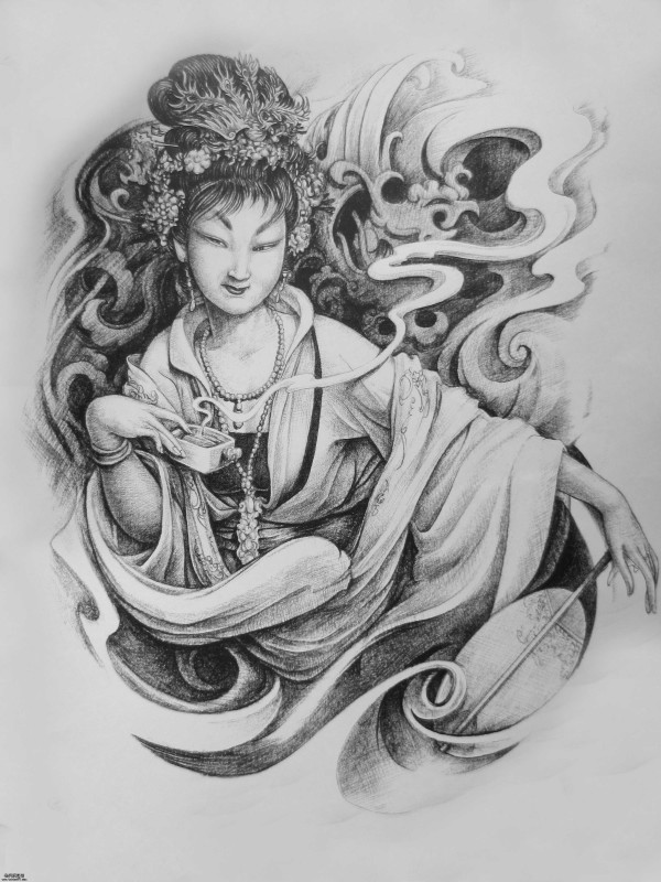 能面万媚纹身手稿_52张日式能剧面具纹身手稿图案素材欣赏