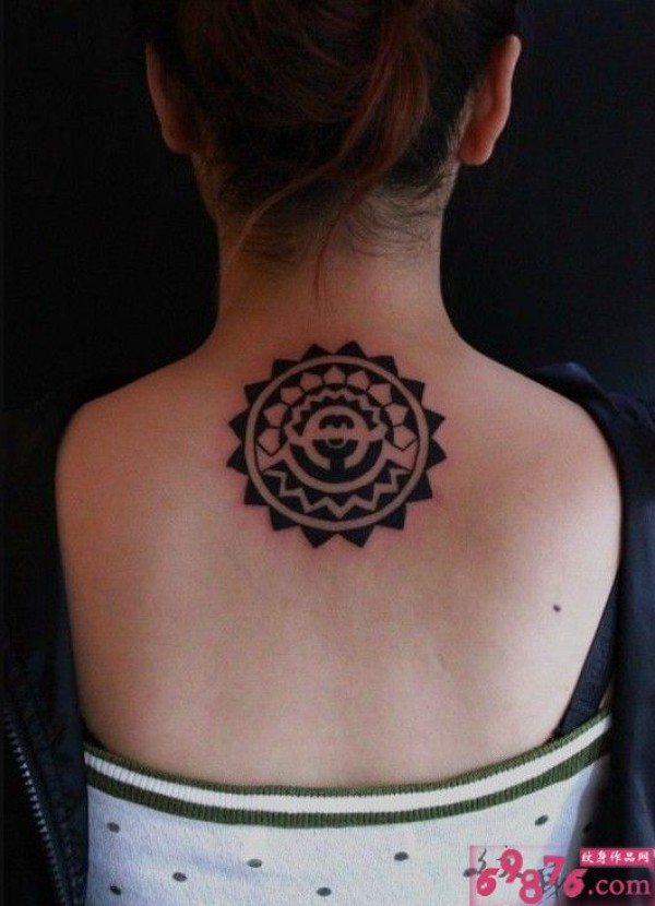 女生背部太阳图腾纹身图片