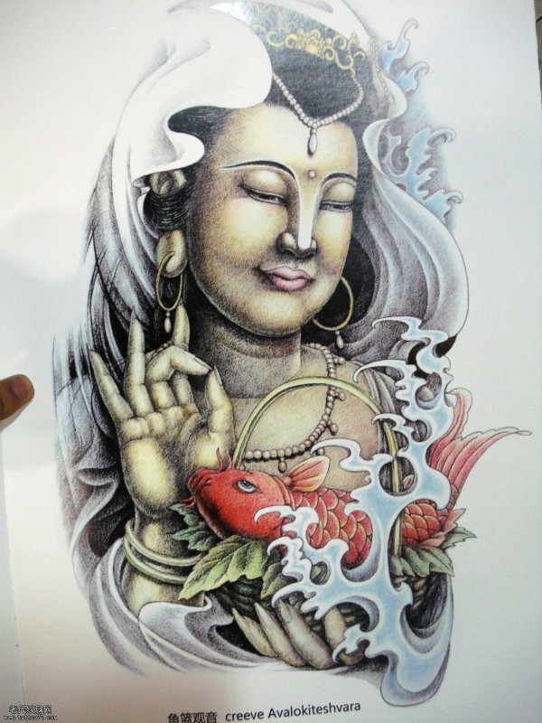 最低级纹身图吧老兵纹身一款彩色观音纹身图案