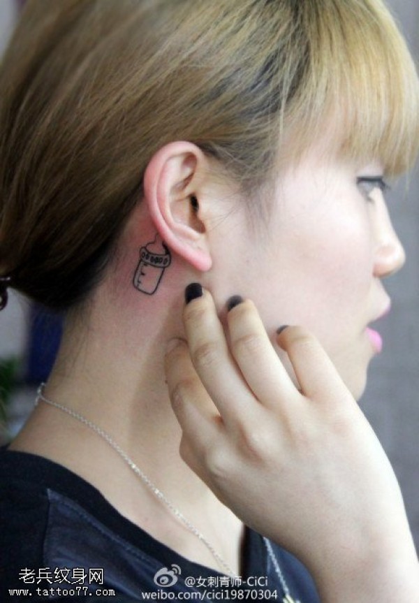 多款女生耳后黑色线条素描文艺小清新小图案纹身图案