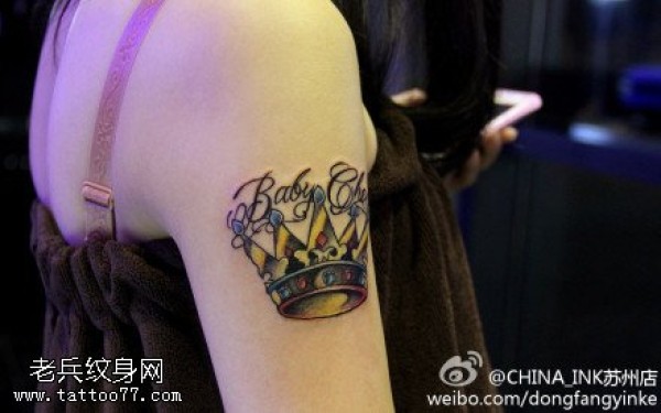 女生手臂彩色皇冠纹身图案