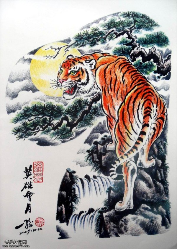 一款传统老虎半胛纹身图案有最专业纹身图吧