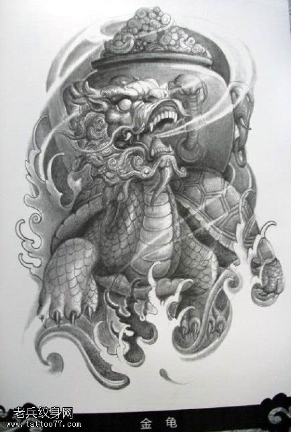 龙纹身手稿_一组老传统黑灰龙手稿纹身图案