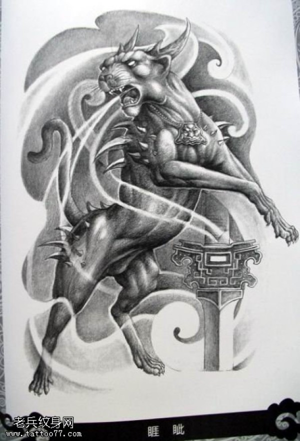 龙纹身手稿_一组老传统黑灰龙手稿纹身图案