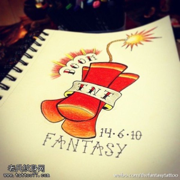 彩色个性鞭炮纹身手稿图案