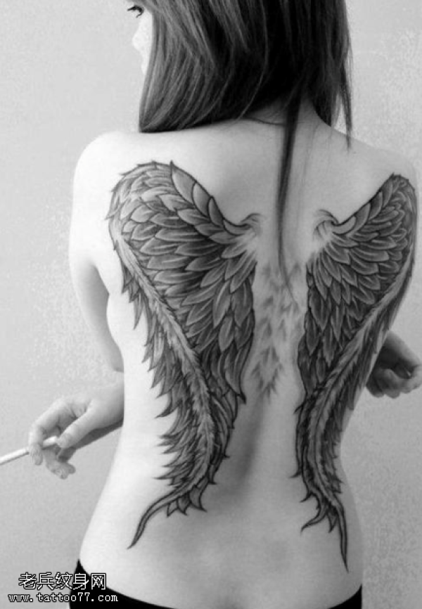 女生满背翅膀纹身图案