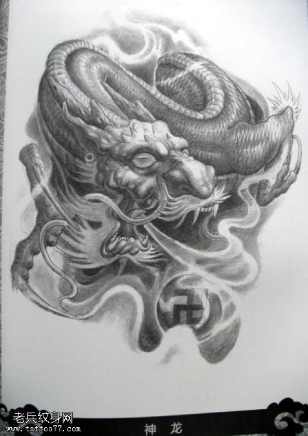 龙纹身手稿_一组老传统黑灰龙手稿纹身图案